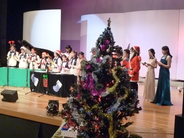 第2部は「みんなでハッピー・クリスマス!」。司会を引き受けてくれた長尾さんは、ずっと廊下で台本とにらめっこ。演奏者の入れ替わり時間を考えて、一生懸命台本に手を加えていました。 出演者の皆さんには々と無理をお願いして、クリスマスムードを盛り上げる構成にすることができました。最後は「きよしこの夜」「ジングル・ベル」を出演者と会場のみんなで合唱してフィナーレです。 出口では「心ばかりのプレゼント」のお菓子を配り、出演者もスタッフもみんなで来場者を送り出しました。会場から笑顔で出てくるたくさんのお客様をみるにつけ、この催しが皆に喜んでもらえたのだとうれしくなりました。