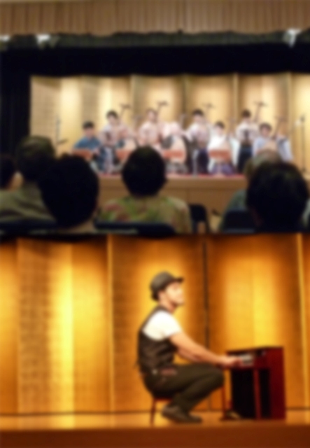 演奏会に行ったもう一つの理由は、トイピアニストのウーーノさんが出演されると書かれていたから(写真下)。以前S先生が「岐阜に面白い人がいる」と教えて下さっていたのですが、やっとそれを見る機会を得ました。 小さなおもちゃのピアノを、ウーーノさんが大きな体を折り曲げて巧みに演奏する様は、それだけでとてもユーモラス。軽妙なトークで笑いを誘いながら、高度な技術でトイピアノを6曲ほど演奏されました。30〜40分ほどでしたが、会場が笑い声でいっぱいになる、非常に楽しいひと時でした。 「ウーーノ」と、「ー」が二つ続く名前にしたのは、インターネットの検索で目に留まりやすくするためだそうです。「ウーノ」だと、某男性化粧品とかばかりで、自分の名前としてはほとんど出ない。でも「ウーーノ」なら、一番に出るとのこと。