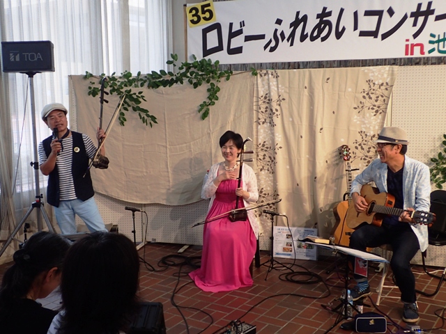 「翼をください」から始まり「蘇州夜曲」「花」「いい日旅立ち」など抒情あふれる曲から、ディズニー映画の曲や「リベル・タンゴ」などリズム感ある曲まで、ざまざまなジャンルの曲を演奏されました。 進行役であるパッチさんの軽妙なトークは出色で、ケンジさんとの掛け合い、中央で微笑を絶やさないシータさんとのバランスも絶妙で、今までのロビコンにはなかった種類(?)の和やかな雰囲気で進みました。 「燕になりたい」の解説では、パッチさんは、「自由」は当たり前にあるわけでなく、好きな音楽を演奏したり聴いたりできる今の自由を尊く思ってほしい、と一転して真剣に語りかけてくれました。