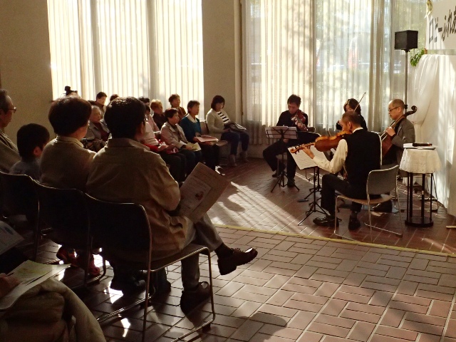 今回はウィーン古典派の大作曲家、ハイドン、モーツアルト、ベートーヴェンが、それぞれ親交や影響関係にあったことを示す曲を、レクチャーを交えながら演奏する形態です。 敷居が高いと思われがちなクラシックの楽しみ方を知ってもらおうという試みで、文化を身近に感じることで、新しい世界への入り口を踏み出してもらおうという私たちの趣旨にピッタリでした。 ハイドンの弦楽四重奏 作品20-5 ヘ長調 第4楽章→モーツアルトの弦楽四重奏第8番 ヘ長調 第2楽章・第4楽章、ベートーヴェンの弦楽四重奏第9番 ハ長調 第4楽章 と、聴いていると、なるほど「どこか似ている…」とモヤモヤしてきました。