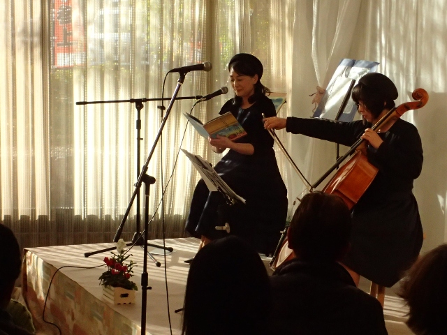 会場は終始水を打ったように静寂に包まれ、朗読の声とチェロの音だけが静かにしみ込んでいきました。