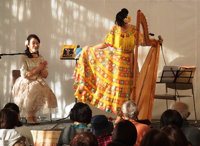 朗読と、「コーヒールンバ」「コンドルは飛んで行く」などのアルパ独奏が交互に進められる中、パラグアイの衣装ニャンデゥティはじめ南米の興味深い話なども二人の対話形式で進められ、実に巧妙な構成に大変感銘をうけました。