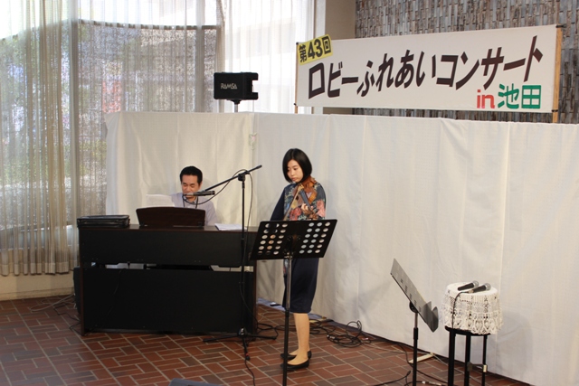5月27日、今年度初めてのロビーふれあいコンサートを開催しました。44回目となる今回は、ヴァイオリニストの娘さん、ピアニストのお父さん、歌&MCのお母さんというファミリーアンサンブル「Brillante」に出演頂きました。