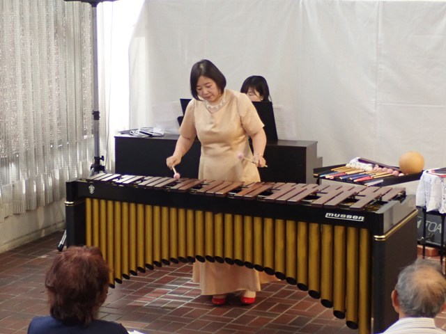 「童神 ヤマトグチ」「竹田の子守唄」をしっとり演奏したのち、今度はマレットの解説。曲によって硬さや持ち手の長さを考えて多数の微妙に違うマレットを使い分けている ことも教えてもらいました。 モンティ「チャルダッシュ」の次は、日本のマリンバ演奏第一人者の安部圭子さんがマリンバのために作曲した「山をわたる風の詩(うた)」。安部さんが悲しみの中でも穏やかな気持ちを喚起させようと作った曲だそうで、なんとも不思議な雰囲気に包まれる曲でした。恐らくは皆さん初めて聴く曲と思いますが、アンケートを見ると、今回のプログラムでダントツの評価でした。マリンバ専用の曲、このような機会が無ければ、まず耳にすることがなかったでしょう。 最後の曲「川の流れのように」の演奏を終えると、大きな拍手とアンコール!の声。