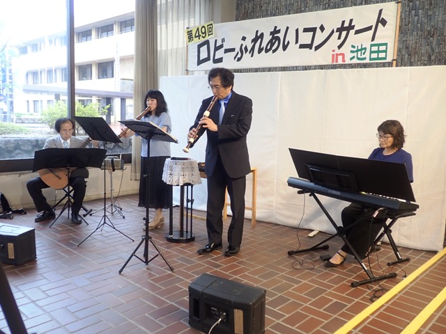 今回、ギターとリコーダーとキーボードという珍しい組合せのグループでしたが、それぞれの特性を活かした柔軟な演奏は新鮮でした。 特にリコーダーはロビーによく響き、時には教会にいるような錯覚に陥ることも。 ギターの古村さんは寡黙なかたですが、繊細なギターの音色と、時折見せる笑顔がとても良かったです。リコーダーの高力さんと共に、「喋らない」担当(?)だそうで…。 隣町のピアニスト岡部さんは、ご持参のキーボードでチェンバロからシンセサイザー、ピアノなど多彩な音でいろどりをつけ、リコーダーの下畑さんと共に「喋る」担当とのこと。 50回近くやって来ても、身近にたくさんの演奏家がおられること始め、まだまだ知らない事がたくさんあることを知った今回でした。