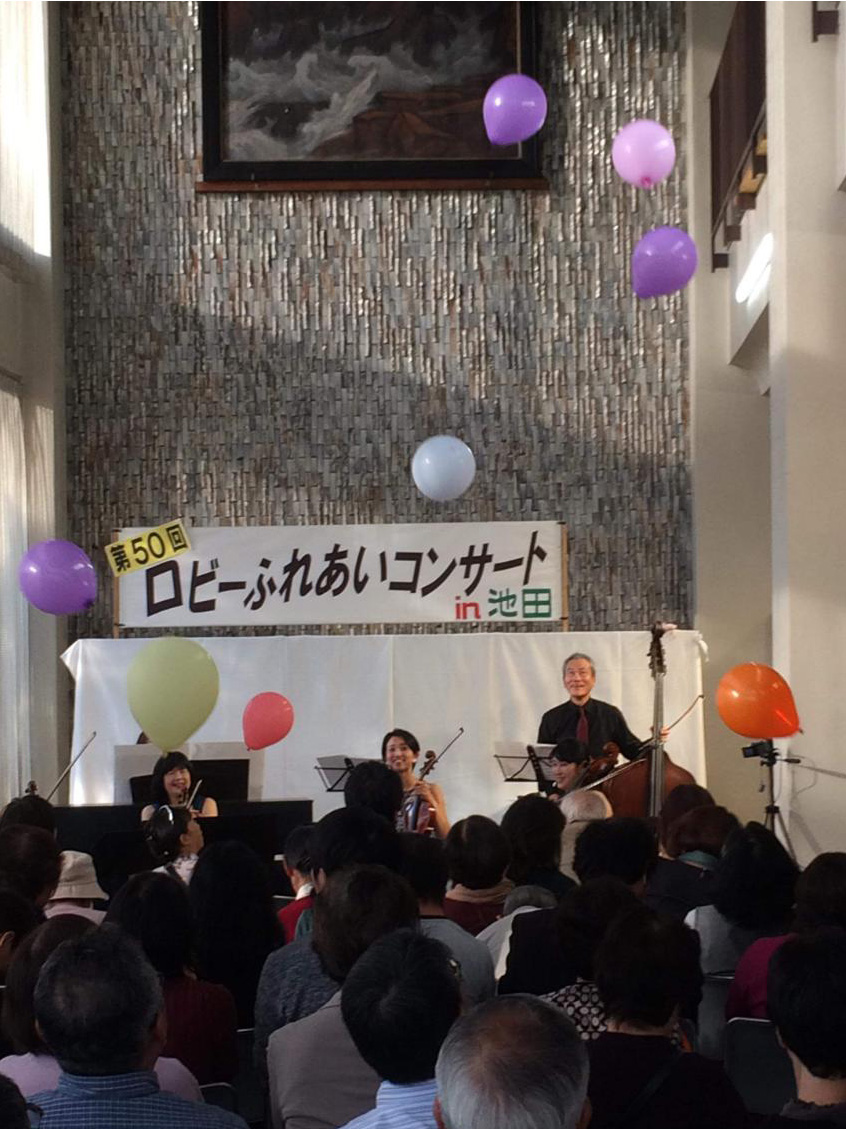 最後はファリャの“パントマイム”と“火祭りの踊り”。静かな始まりから終盤に向けてどんどんテンポがアップし迫力が増してくるこの曲は、本当に盛り上がります。弦楽器の音が会場の空気をビリビリと震わせ、そしてフィナーレ! ここで、Yの「曲の最後に合わせて2階から風船の雨を降らせたい」というたっての希望(笑)で準備した100個あまりの風船を、それっ!と落とします。 ・・・ちょっとイメージとは違う降り方でしたが、皆さん笑顔で風船を受け止めてくれて、とてもうれしかったです。 アンコールは、やはり日本の舞曲。日本の四季より“秋”「村の鎮守の神様の 今日はめでたいお祭り日♪」大盛況のうちに終演となりました。出口では会員でつくったプレゼントをお渡しし、演奏者も来場者も会員も、みーんな笑顔の記念の日でした。