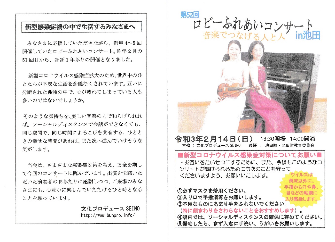 今回は、日程は定めましたが、感染症の動向を注視して、開催の可否判断は直前まで待つ、としました。 演奏家が、選曲と長い練習の果てに臨むコンサート。実施可否が直前まで決まらないという出演条件は、通常では受け入れ難いものと思います。そんな無茶を快諾くださったお二人の心意気には、感謝の念に堪えません。提示されたプログラムは、まるでコロナ禍の中での音楽の在り方を問いかけているようなラインナップで、ここにもお二人の意気込みを感じました。 定員を定めた事前予約制とし、感染症対策を万全に。チラシや当日プログラムも紙面の半分近くを注意書きや開催への思いに費やしました。